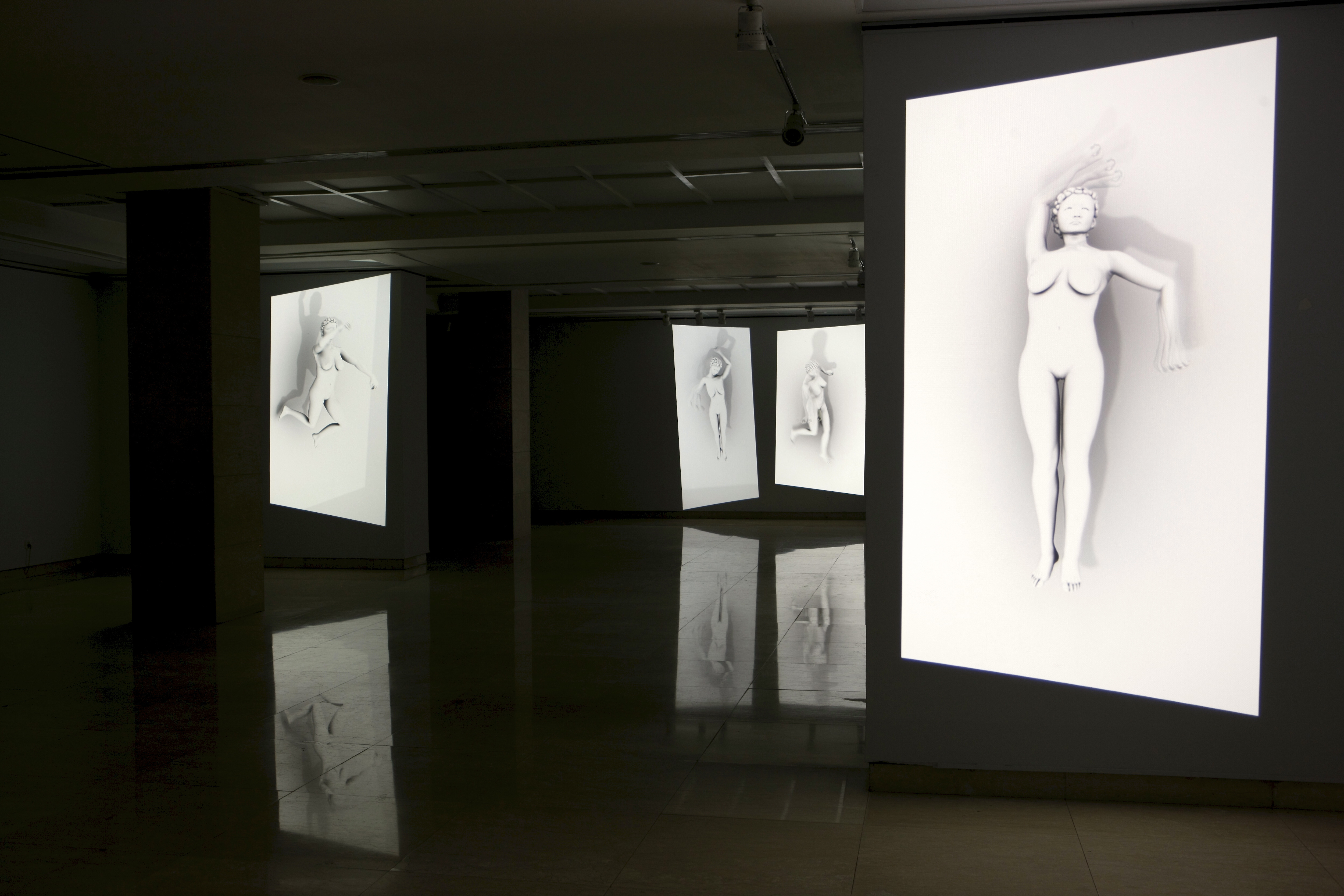As one of the first women artists who employed 3D visual language in fine art practice, Hart is acutely aware of the gender politics of the high-end technology industry. The industry has been exclusively male-dominated community since its very inception and, as a result, of her confrontation with it, Hart has investigated the problematic of the sexual representation of women. The classic binary of man being the subject and woman the desired object defines the conventional image of women, epitomized in the well-known game character Lara Croft. In her representations in 3D games and Hollywood movie, Croft's self-empowered and healthily sexy vibe are overshadowed by its image of seductive, devilish temptress, which goes back to the classic "femme fatale incarnate."