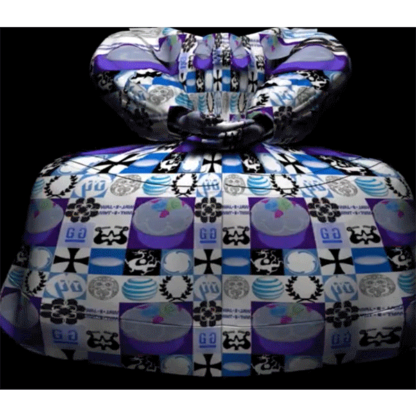 Like her doll houses, Hart’s paper billboard tutus are also drawn from the scion of a fallen empire: the gowns of Margaret Theresa of Spain, among the last of the Spanish Habsburgs. This child princess was also the central figure in the famous painting Las Meninas, a canonical masterpiece by the great 17th-century court painter, Diego Velázquez, and the subject of many paintings. The algorithmic flickering patterns used in The Dolls were composed of graphics made with the symbols of collapsed empires - from the Faberge eggs of The House of Romanov to the banners and heraldry of Genghis Khan and the Mongol Empire. Distributed among these are also the logos and graphical icons of US multinationals and technology corporations.